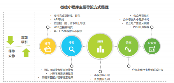 微信小程序覆盖了搜索、扫码、分享、跳转等多种引流入口,更方便地实现微信用户与电商业务之间的联系